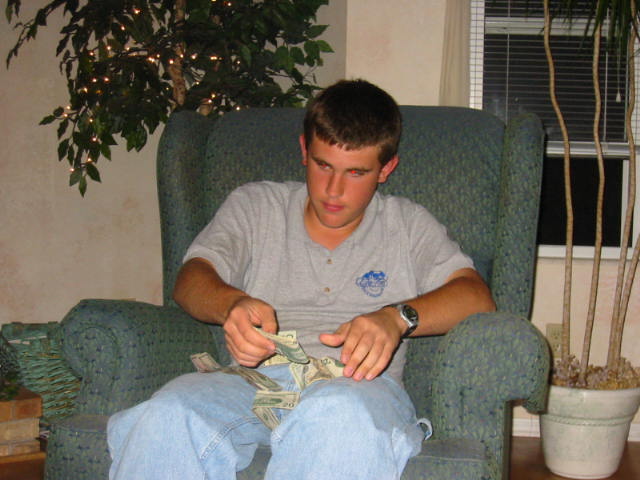 Everytime I see the BoyHead lately I think, "he's very nearly a man". Well, today he got one step closer--he turned seventeen. It's not the big milestone of sixteen (getting to drive) or eighteen (getting to vote), but as he reminded me, "Hey, I get to see R-rated movies". Two days before his birthday, BH finally comes out with "The List". Of course at that late date there's no time to acquire most of the "must-haves". We had been kidding him that we were getting him all clothes. Of course L.D. loved that; clothes, earrings...ya know, girl stuff. Well, we were pulling that with B.H. too. I told him, we were getting him a nice windbreaker. Maybe a sweater vest. Just what every 17 year old boy wants. To make the whole ruse complete, Lovely Wife and I took some Dillard's boxes, put some old clothes in them and stuffed the pockets with $$. We wrapped them up and put them on display in the traditional location: in front of the fireplace. You should have seen his face as he attempted to appear happy upon receiving an old windbreaker that he would never ever! wear. I asked him to check and see if he thought the pockets would be big enough. After that, he checked every nook and cranny of every article he opened. The BoyHead is growing into such a wonderful, responsible, hard-working and compassionate young man and I'm proud that he's my son.