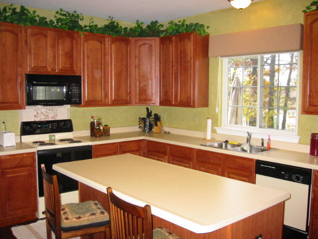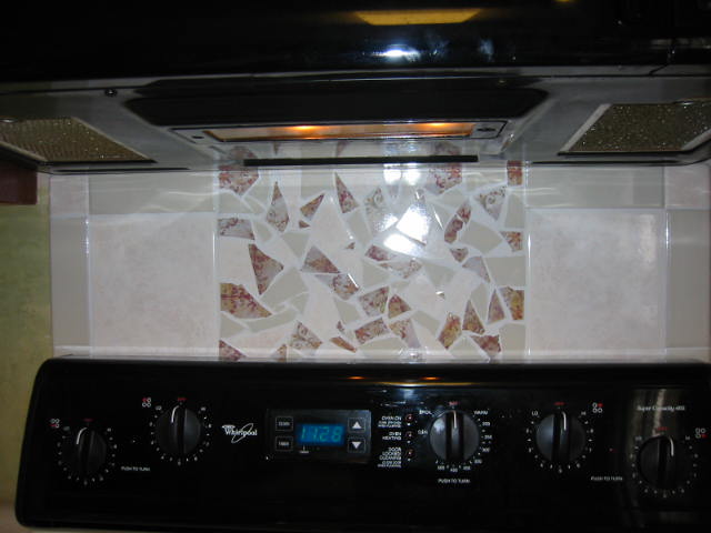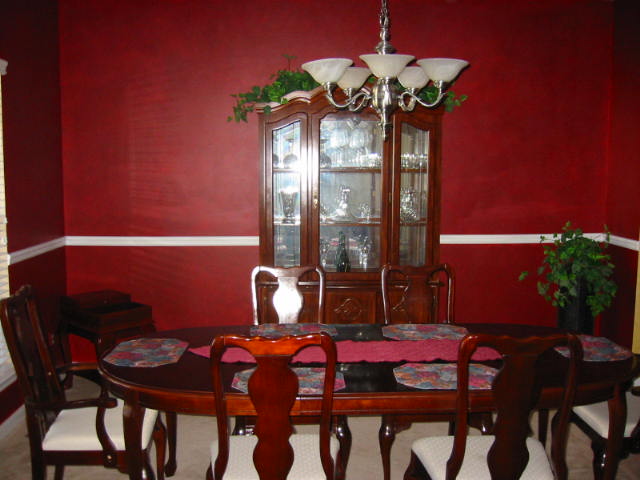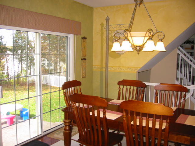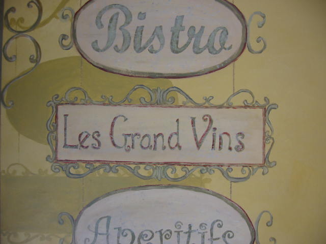 Lovely Wife "The Artiste" continues to shine. Here are some pictures from a project she just finished. She repainted the kitchen and added a tile mosaic behind the oven. She repainted the breakfast room and added a "trump l'oi" signpost. She also painted the formal dining room and added chairail (she got to use the cool electric mitre saw--we love that). She did all this in about 2 1/2 weeks. The people love her work so much they want her to do the kids rooms next. She just started on that this week. That Lovely Wife is a hard worker.