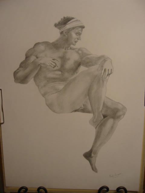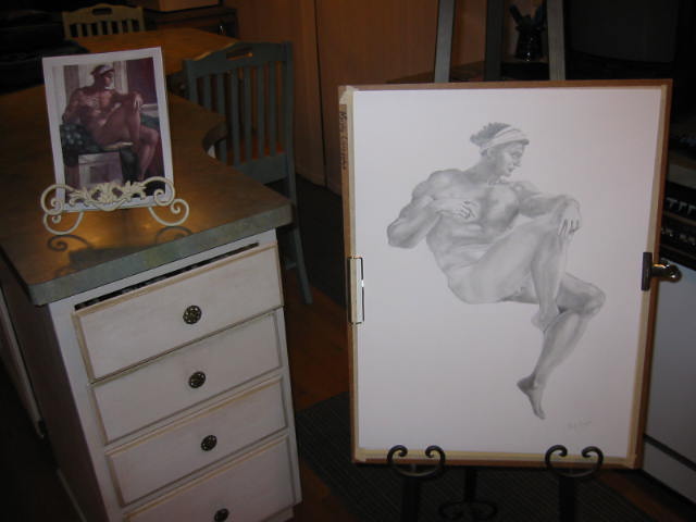 Lovely Wife has been taking a figure drawing class at the local community college. Just so happens that all the "figures" she draws are nudes. They have live actual nudes pose for them in class. Anyway, here are some pictures from her second project. (The first project she drew Sir, BoyHead and Lovely Daughter--don't worry, just our hands).