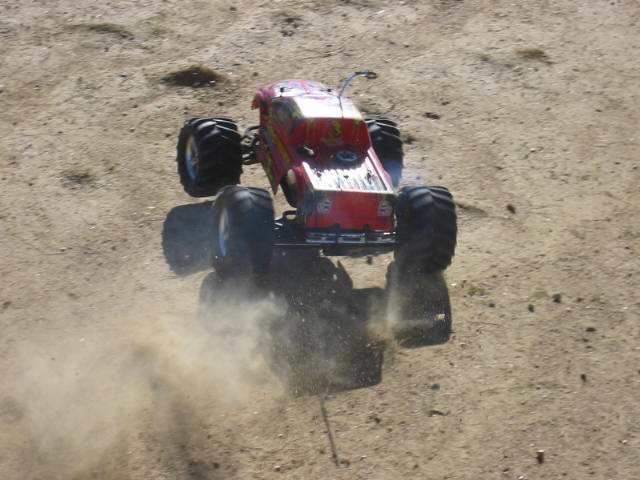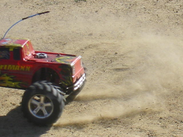 BoyHead and I had a great morning running the Traxxas Sportmaxx. Now that we have the "fraught with danger" two speed transmission installed (thanks to Brother), it runs fantastic. Below are some pictures of the thing in action. For those of you who really care, check out the movie clip.