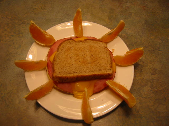 Behold...the perfect, hand-crafted Breakfast Sandwich. Lately, I've been making Lovely Daughter breakfast before school. Since Lovely Wife has been working hard, I thought I'd let her sleep a bit. What I lack in repetoire, I make up for in pure-d-ole goodness. Scrambled eggs, farina, oatmeal--those are my limits at omigosh-thirty in the morning. Today's feature was the world-famous "Breakfast Sandwich". Basically, it's a couple of fried eggs on toast with a slice of cheese and some ham. It's hearty, delicious and expeditious. It can go fridge to plate in about six minutes, which is very important for those early mornings when every minute counts.