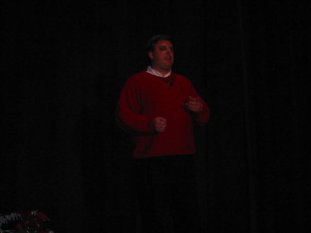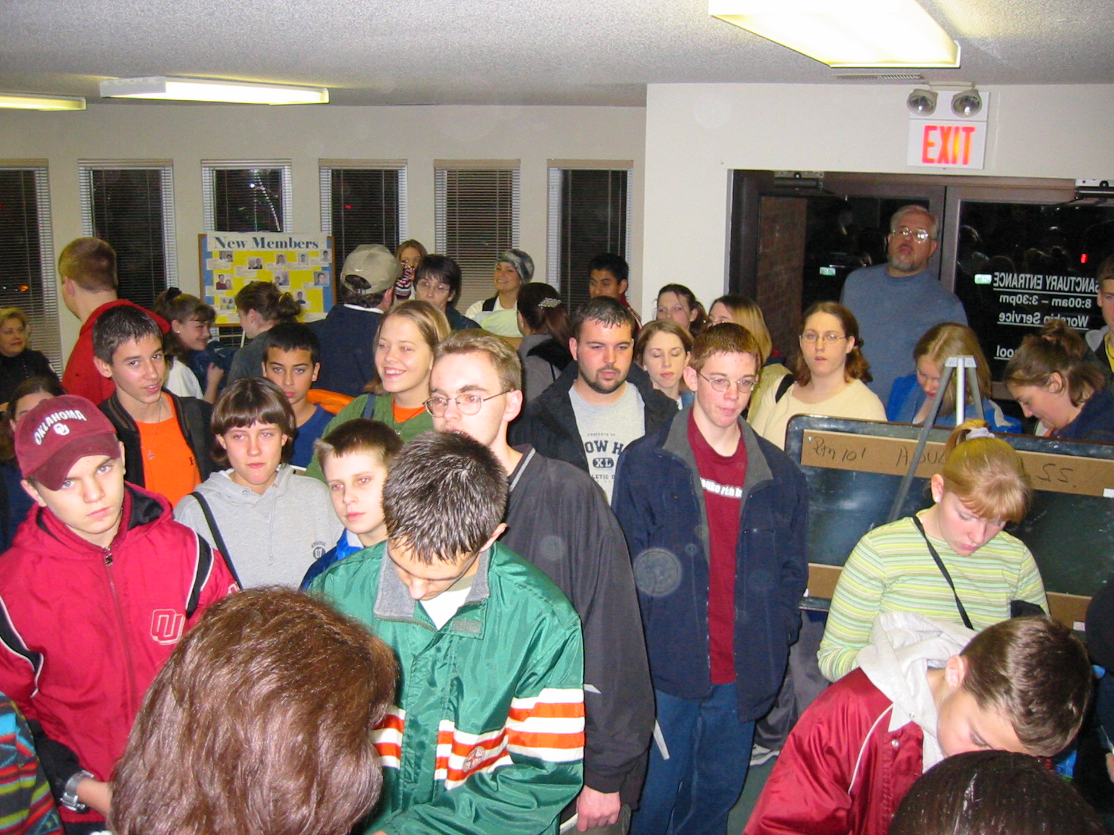 We've been very busy the last few days with ShoutFest. What is ShoutFest, you ask? Well, it's the New Year's Eve celebration for the youth at our church. There are nerfball gun wars (we have like 70 air powered, 3 chamber, 15 round guns and we play capture the flag), there are live bands all night, there is outdoor football under the lights, there is hockey, tons of board games, nintendo/x-box/gamecube/playstation/whatever rooms (some with the games projected onto large screens), ping-pong, foosball, and food, food, food. Lovely Wife is in charge of the food this year. 7pm-9pm: Spaghetti dinner. 9pm-11pm: nachos and hot dogs. 11:30 to 2:00 am is a time of celebration and worship. Then 2:30am-4am: breakfast, featuring scrambled eggs, pancakes, bacon and sausage, juice. Piece of cake, huh? Last year we had 350 kids. This year we're expecting over 400! Here are some pics from last years event.