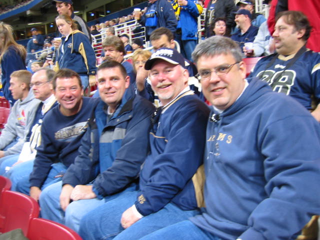 The Rams continued their season ending death spiral with a terrible loss against the hapless Arizona Cardinals this past Sunday. After starting the season with a 4-1 start, the Rams have lost six out of their last seven games and were unable to defeat the 2-9 Cardinals. Thanks to the brilliant use of the "No Offense Huddle", the Rams were defeated 34-20. But, I am benefiting from the Rams misfortunes. The more they lose, the more games I get to go to (hey, at least I'm thinking optimistically). Last week, the ManHead and I went to see the Rams eke out a 30-27 nailbiter against the 49ers and this week, I was able to bring the gang for Sunday afternoon festivities. Well, even if the team doesn't play well, at least the pre-game party is pretty good.