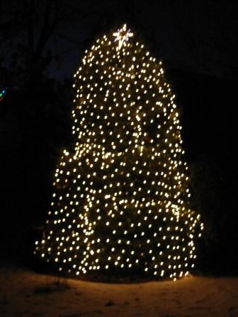 It's the annual Livingston Light Celebration (yeah, I tried to come up with a third "L" word, but couldn't do it). These lights, you know, are both a blessing and a curse. I love to see them when they're up and lit. I don't really mind putting them up either--BoyHead ManHead and I did it on a sunny 65o late Autumn day which was quite lovely. The real curse of these lights is their reliability. They are constantly burning out. I cannot go through a whole season without burning out at least three strings. But hey, let's not focus on the negative. Aren't they lovely? I've got more lights burning than North Korea. Even the tree-huggers are pleased. How could you not be? It's the most wonderful time of the year.