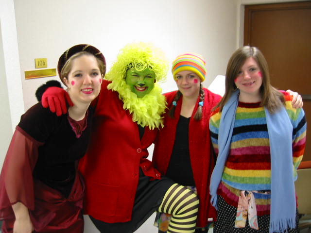 Lovely Wife wrote a series of skits involving various aspects of grinchiness for the current series at church, "Are you the Grinch". This weeks topic was "Busyness"--something that L.W. can certainly relate to. As luck would have it, L.W. was given the opportunity (thanks to an 11th hour schedule change) to play Greta Grinch. Of course, she pulled it off in a most robust fashion. I was the humble narrator and read aloud in my best James Earl Jones voice. Everyone looks forward to more such performances in the upcoming weeks.