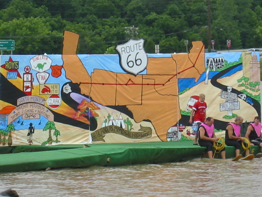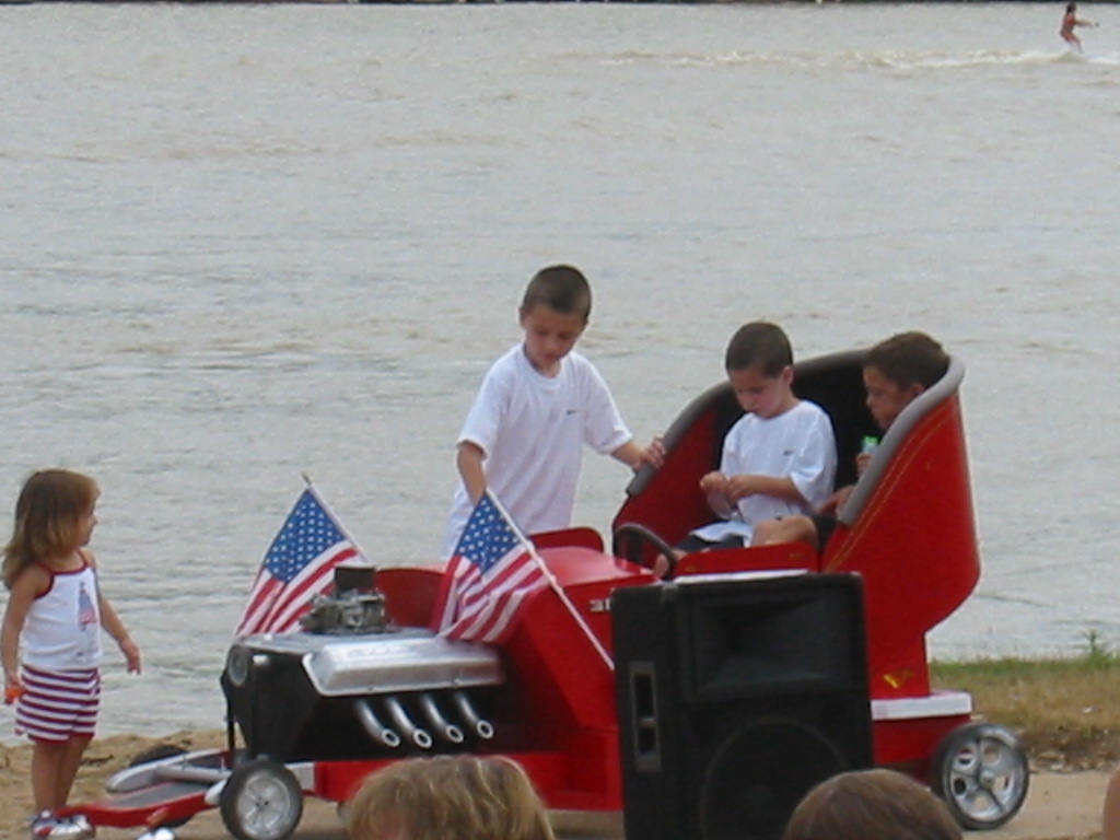 Our celebrations began early on Saturday morning. Lovely Daughter was in the annual Ski Show. She has been on the water practicing since May. The annual ski show has become a tradition for our family for the past four years and has been a local tradition for over twenty years. The ski club is an important and active part of the community and each year over 100 people of all ages participate in the show. This year's theme was Route 66. Other than the set at the primary dock, I'm not sure how that all ties in--but what the heck.