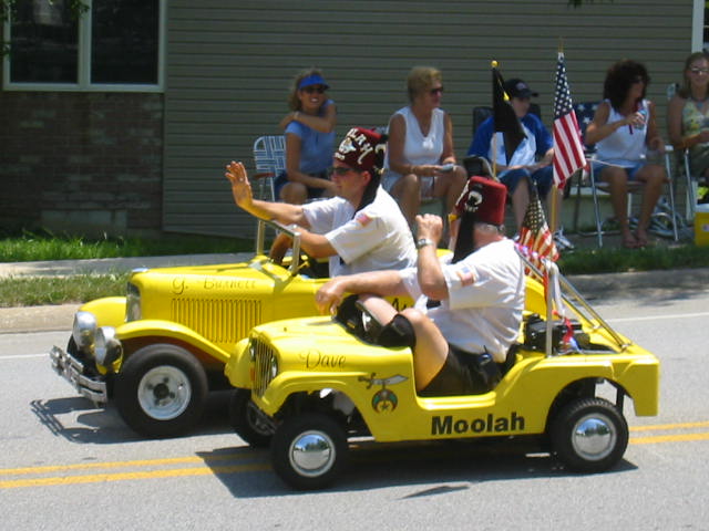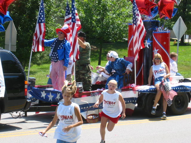 And what Fourth of July would be complete without the requisite parade. This was the first one we've had in several years. Firetrucks, ambulances, police cars, politicians, candy, marching bands, dudes in way small cars. This parade had it all. The candy girls came and dumped a handful at my feet--I'm not quite sure what that means. Perhaps I looked a bit pekid out there in the sun.