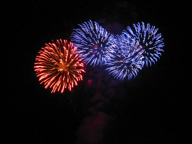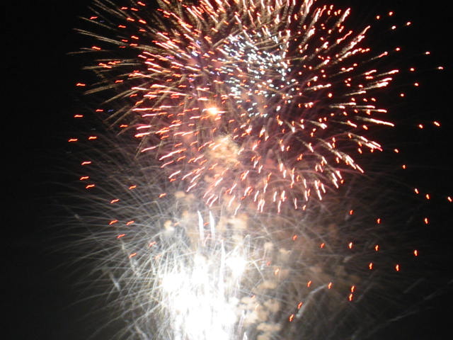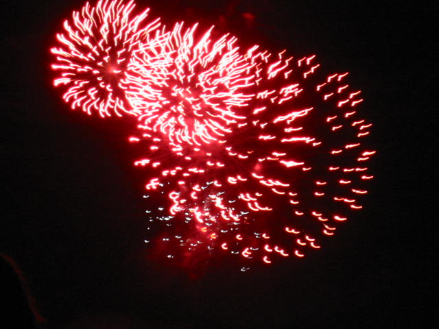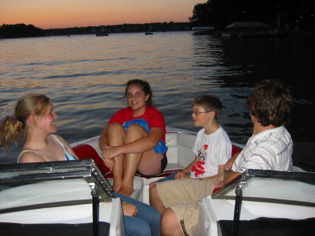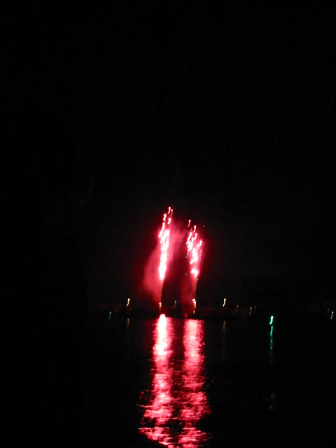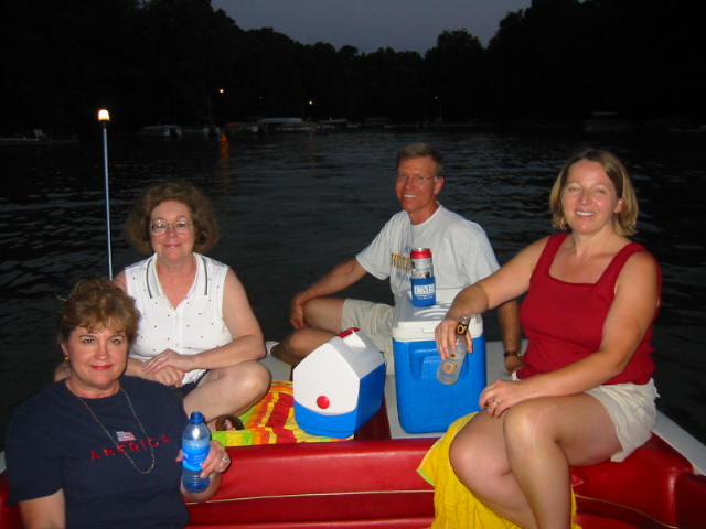 After dinner (and some more hootenany action) it was time to go to the fireworks. They shoot the fireworks out over the lake, so the water is completely full of boats. You can almost walk across the lake on the boats--there are that many. Our dinner guests graciously took us out on their boat to watch the show. Nothing better than watching the works from the water.