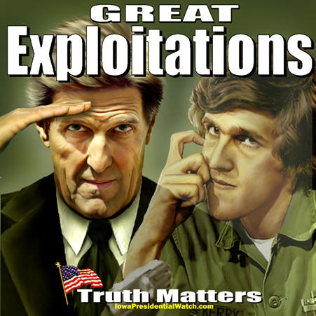 Compare that to Senator Kerry's emphasis on his 4 1/2 months in combat in a war that ended more than 30 years ago. "Silver Star, Bronze Star, three Purple Hearts". Say it again, "Silver Star, Bronze Star, three Purple Hearts". All together now: "Silver Star, Bronze Star, three Purple Hearts". Hardly a mention of our current war. Which of these two (Vietnam or the War on Terror) do you think are more relevant to this election? Exploit? Sheesh!